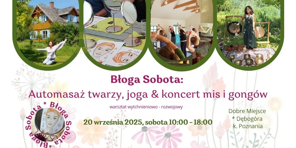 Zapraszamy wraz z Renatą na wyjątkowe warsztaty rozwojowo-wytchnieniowe, czyli Błogą Sobotę - na piękne zwieńczenie lata. Niech to będzie Twój dzień pełen radości, uwagi skierowanej na samą siebie i zasilania się pięknem ostatnich dni lata na wsi. To będzie cały dzień w życzliwym kobiecym gronie.